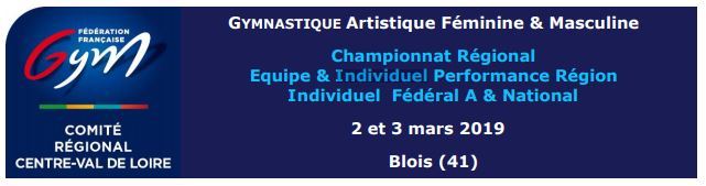 Championnat régional GAF/GAM Equipe et Individuel Performance, Individuel Fédéral A et National les 2 et 3 Mars 2019 BLOIS
