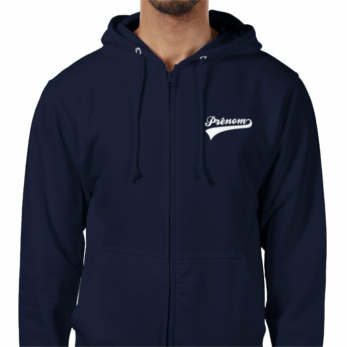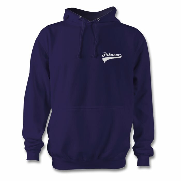 2 versions de ce sweat à capuche sont possible le sweat classique pour 35 € ou le sweat zippé (  avec fermeture éclair , à partir de la taille S) à 38 € ; la personnalisation avec le prénom est offerte.