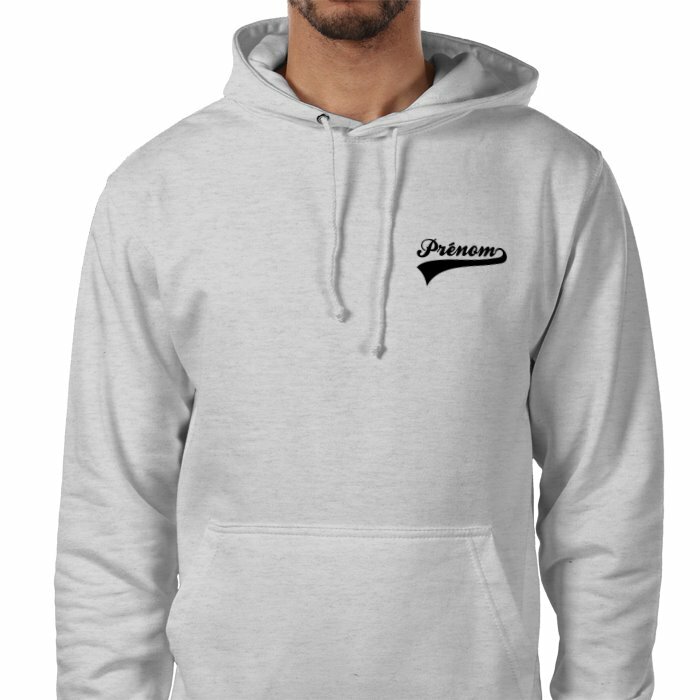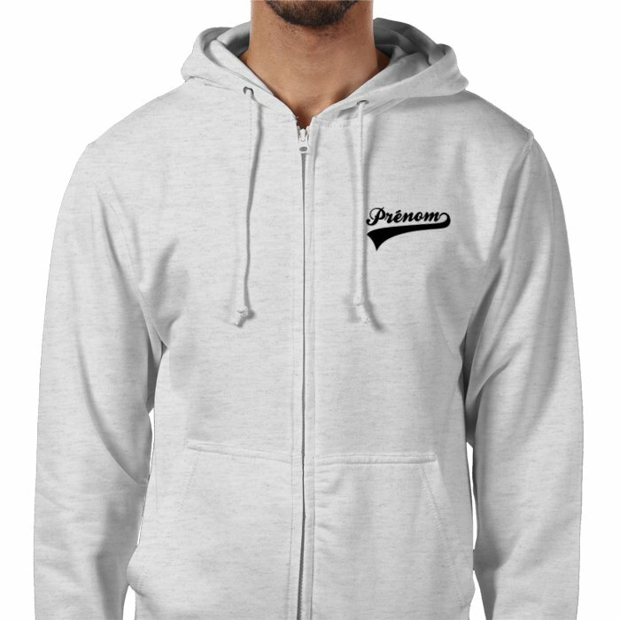 2 versions de ce sweat à capuche sont possible le sweat classique pour 35 € ou le sweat zippé (  avec fermeture éclair , à partir de la taille S) à 38 € ; la personnalisation avec le prénom est offerte.