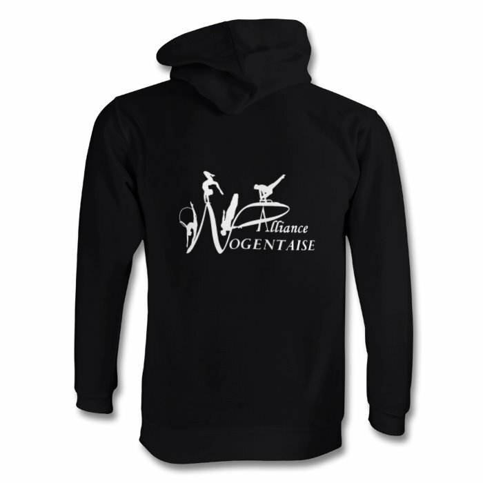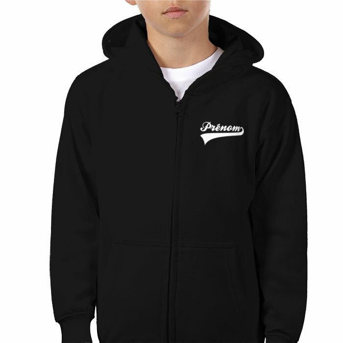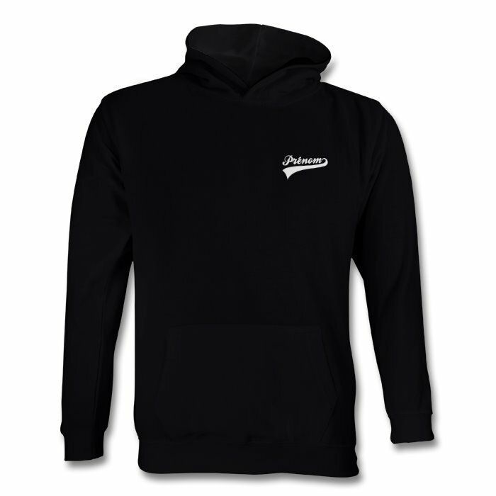 2 versions de ce sweat à capuche sont possible le sweat classique pour 30 € ou le sweat zippé ( avec fermeture éclair ) à 33 € ; la personnalisation avec le prénom est offerte.